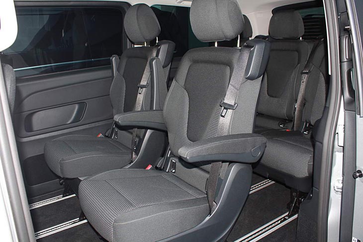 Tras el EQC, la marca de la estrella lanza su segundo modelo totalmente eléctrico materializado en este EQV derivado de la Mercedes Clase V. Gracias a la ubicación de la batería bajo el suelo, su capacidad interior no se ve alterada, pudiendo acomodar entre 6 y 8 plazas (7+1), disponiendo de un volumen de maletero de 1.030 litros de capacidad en la variante Larga (1.410 l en la Extralarga). Su diámetro de giro de 12,9 m es bastante pobre si lo comparamos con sus hermanos térmicos (11,8 m), al ser un tracción delantera.