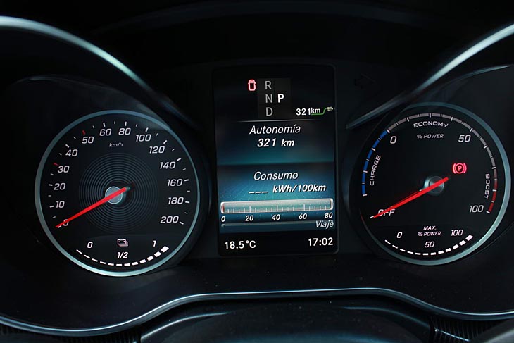 A título informativo, con 20 km recorridos en ciudad en modo E+, el consumo me dio 23 kWh/100 km, habiendo recuperado energía para recorrer unos 4,5 km. La conducción por carretera (a unos 100 km/h marcaba 21 kWh/100 km) resultó de lo más silenciosa y confortable gracias a sus cómodas suspensiones de serie (elevan la carrocería 2 cm más por la ubicación de la batería en el suelo del vehículo), que pueden ser complementadas por la amortiguación neumática Airmatic, que permite elevar la altura 3 cm más (a baja velocidad) con la función «Lift».