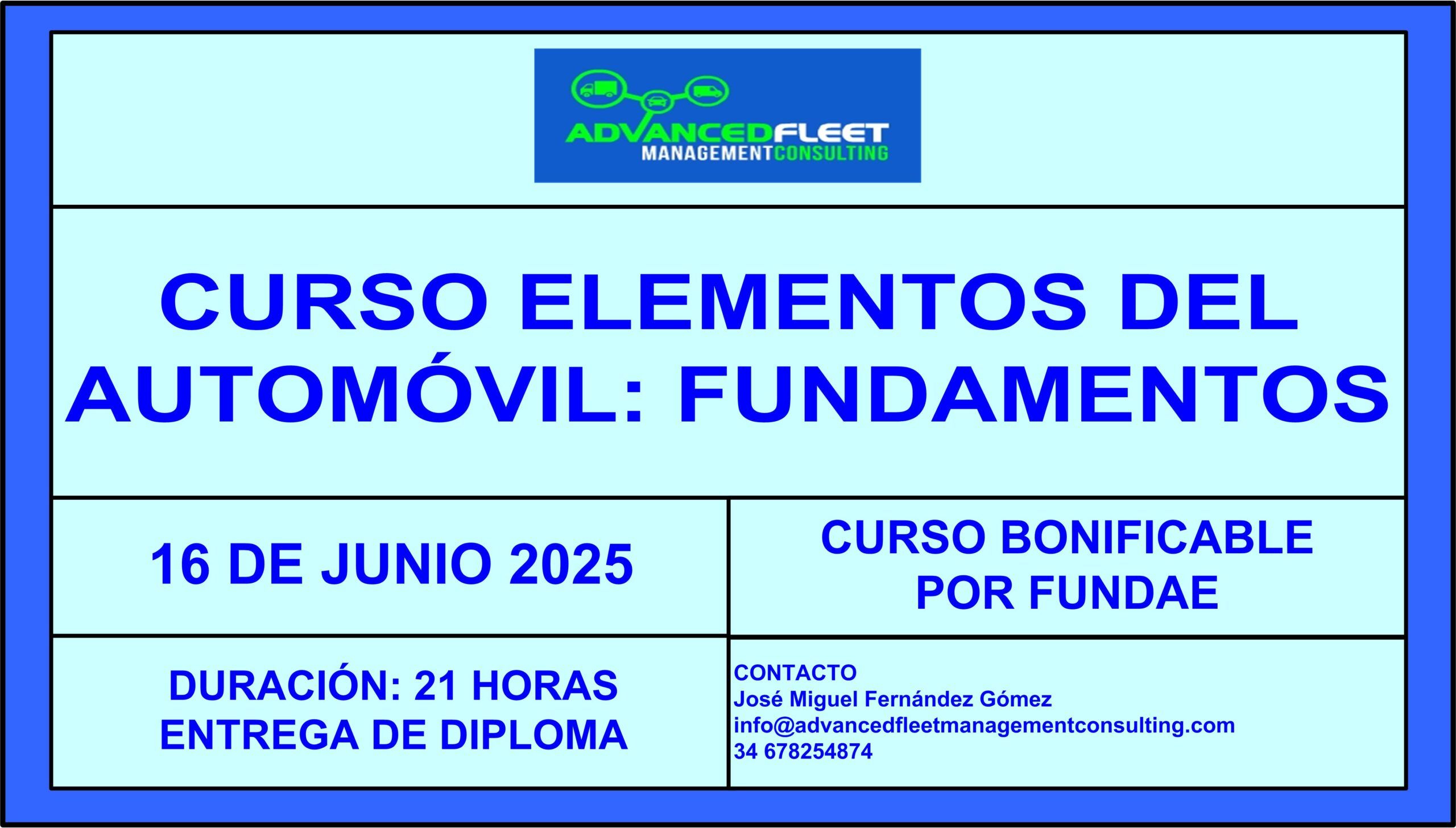 Advanced Fleet Management Consulting desarrolla el curso para adquirir los conocimientos fundamentales de los elementos que componen el automóvil y realizar un correcto mantenimiento y buen uso de los mismos.