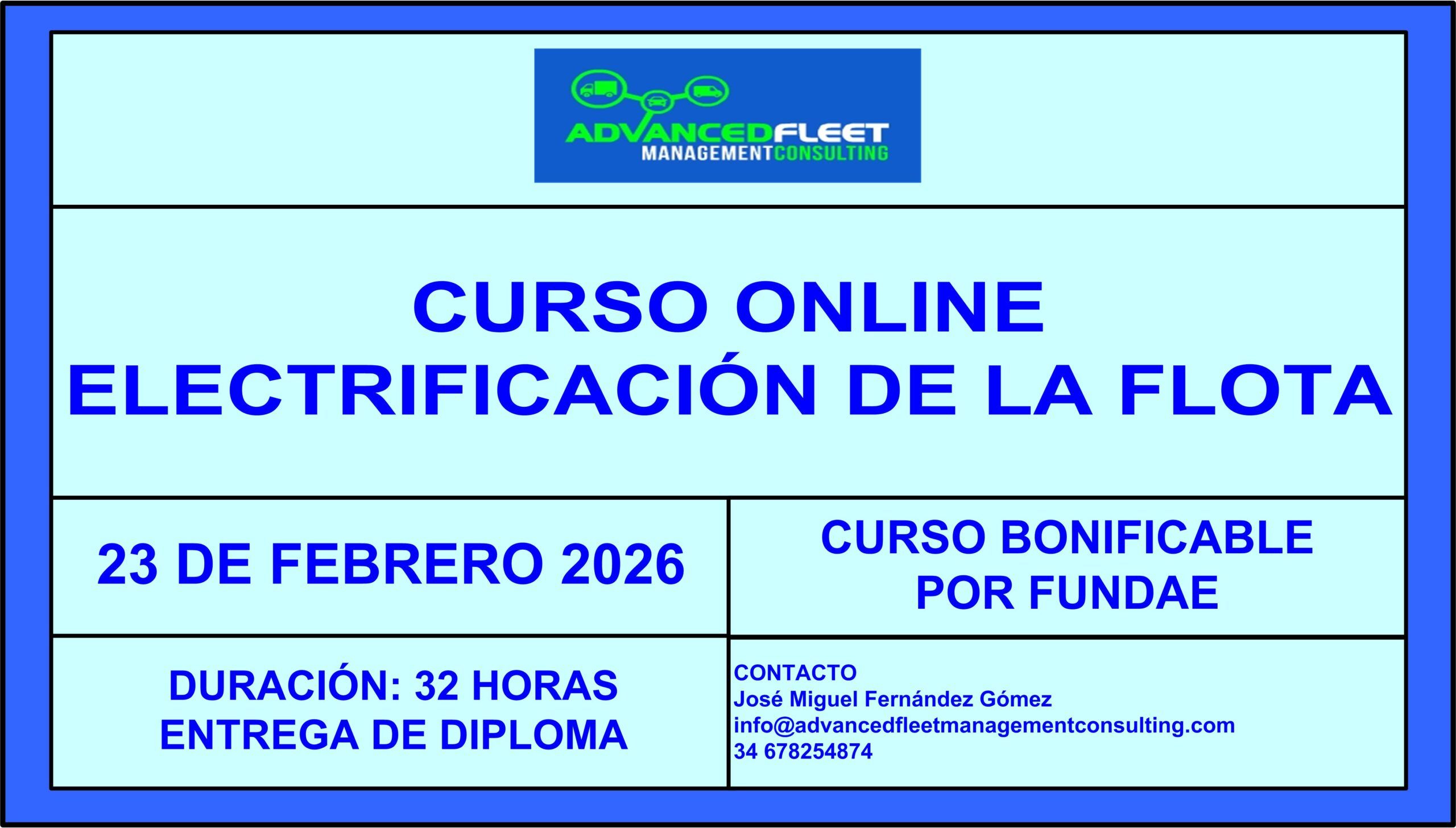 José Miguel Fernández Gómez es el manager de Advanced Fleet Management Consulting, compañía Española consultora especializada en gestión de flotas de vehículos. Con este curso quiero poner a disposición de mis clientes mi experiencia y el conocimiento adquirido durante mi carrera laboral y académica en esta disciplina.