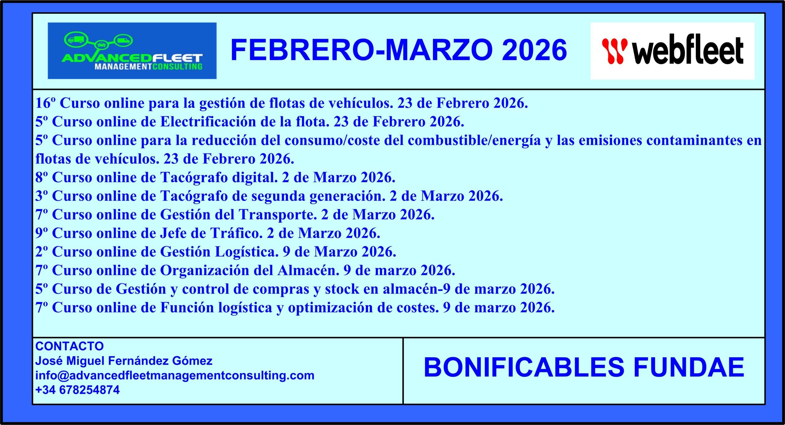 5º Curso online para la reducción del consumo/coste del combustible/energía y las emisiones contaminantes en flotas de vehículos. 23 de Febrero 2026.