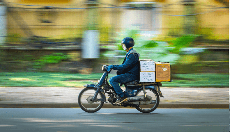 En el caso de las motocicletas, las restricciones son más estrictas por su propia naturaleza. No está permitido que la carga sobresalga por los laterales más allá del ancho del vehículo ni por la parte delantera.
